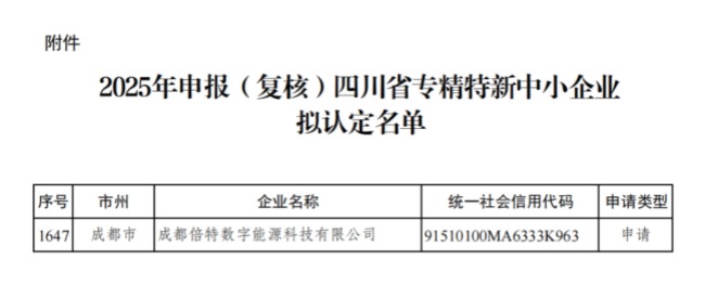 倍特數(shù)能獲四川省專精特新中小企業(yè)認(rèn)定